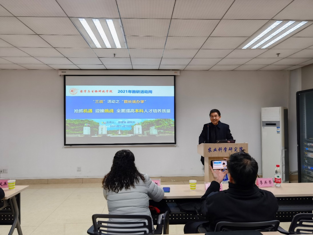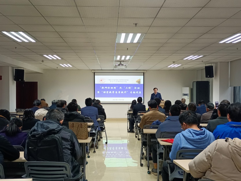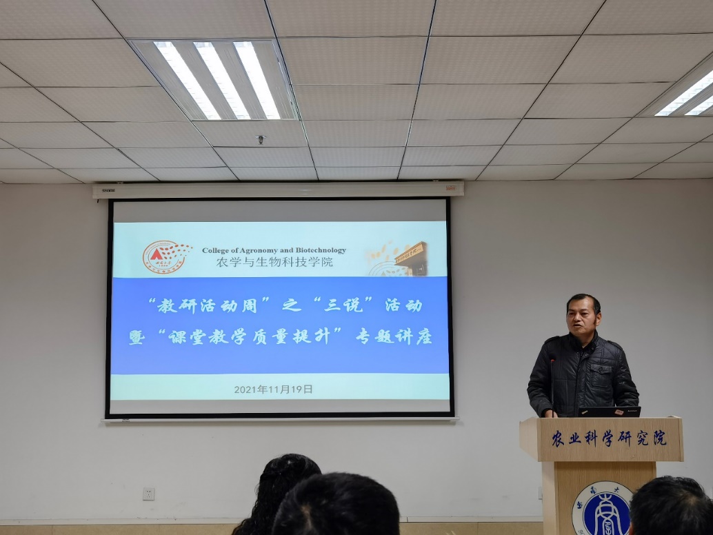 在隆平楼205开展第三届“教研活动周”之“三说”活动暨“课堂教学质量提升”专题讲座。学校教师教学发展中心主任刘义兵,学校教学督导专家杨晓红、尹克林、袁伦强、王亨洪、张正圣、李关荣等教授受邀出席。活动由副院长卢坤主持,全体教职工参加。