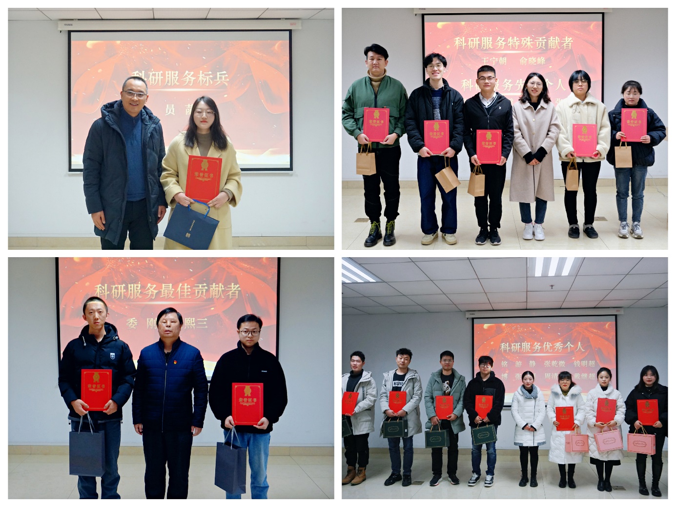 颁奖典礼第二项,由阳书记、柴友荣老师、庞丹老师和段红老师分别为西南大学2020-2021学年度科研志愿帮扶活动“科研服务标兵”、“科研服务最佳贡献者”、“科研服务特殊贡献者”、“科研服务先进个人”以及“科研服务优秀个人”等荣誉称号获得者颁发校级荣誉证书及丰厚奖品,并合影留念。其中,员菡博士获得本次颁奖典礼最高奖项“科研服务标兵”荣誉称号,委刚、琚熙三两位同学获得“科研服务最佳贡献者”荣誉称号,王宁朝、俞晓峰两位同学获得“科研服务特殊贡献者”荣誉称号,张莹莹、杨宏霞、张帅、张媛四位同学获得“科研服务先进个人”荣誉称号,刘铭、游静、张乾微、钱明超、杨博、张秋丽、周清颖、戴继超八位同学获得“科研服务优秀个人”荣誉称号。