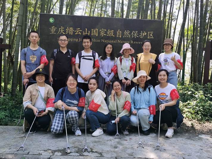 图1:西南大学科研服务站组织学校科研学子赴缙云山开展环保公益实践活动