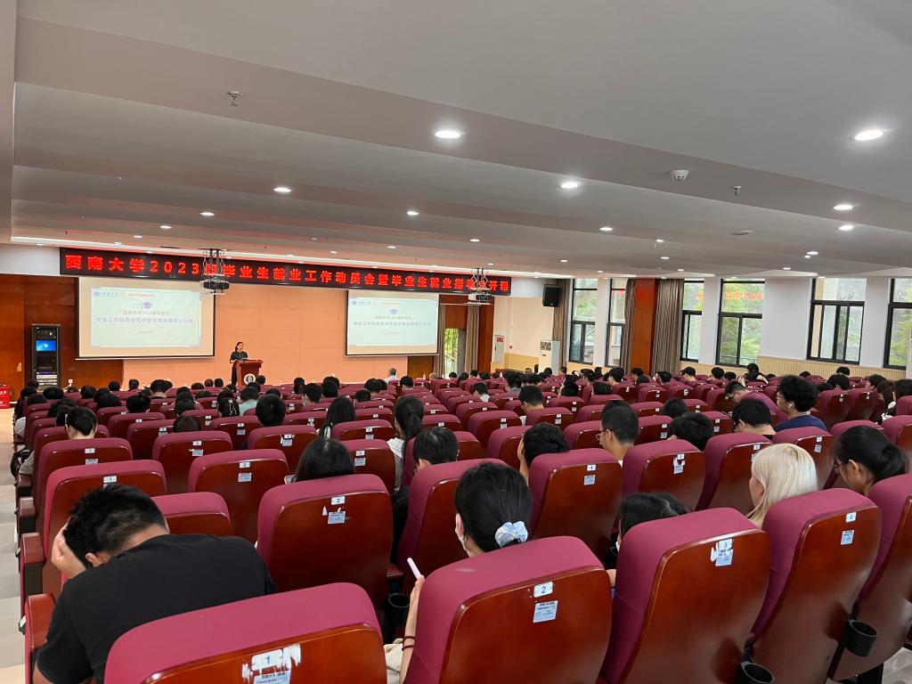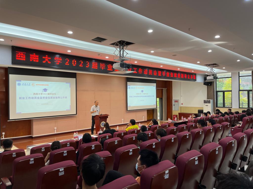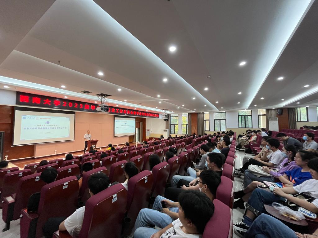 西南大学招生就业处处长李栋宣在会议上补充强调:为促进毕业生早日就业、尽快就业,学校将一如既往的高度重视,通过健全体系、建强机制,实施就业工作十大行动计划,大量举办校园招聘会,扩大选调生招录,举办保送考研分享会等方式为同学们提出更深情的帮助和更细心的指导。对广大毕业生,他提出四点希望:一是要担当作为,报效祖国,努力成为一名立大志、明大德、成大才、担大任的时代新青年;二是要客观定位,把握机会,深入把握就业形式,善于剖析自身条件,既不妄自菲薄也不夜郎自大,主动转变就业观念;三是要拓展视野,主动出击,打破校园极限,特别是要抓住秋季校园招聘高峰期的宝贵计划,给自己创造更多的机遇与希望;四是要坚定信心,久久为功,埋头苦干,扎实蓄能,为自身理想不懈奋斗。