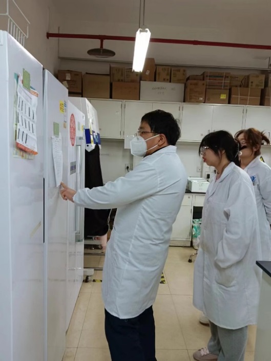 在检查中发现,部分实验人员安全意识薄弱,比如:存在未穿实验服、实验环境卫生差、冰箱试剂清单未及时更新、危化品用完未及时归还等问题,曲院长当场提出了批评意见和具体整改要求。