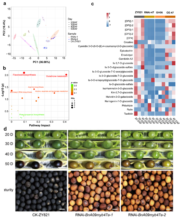 图2 BnA09MYB47a 影响黄酮类化合物的积累