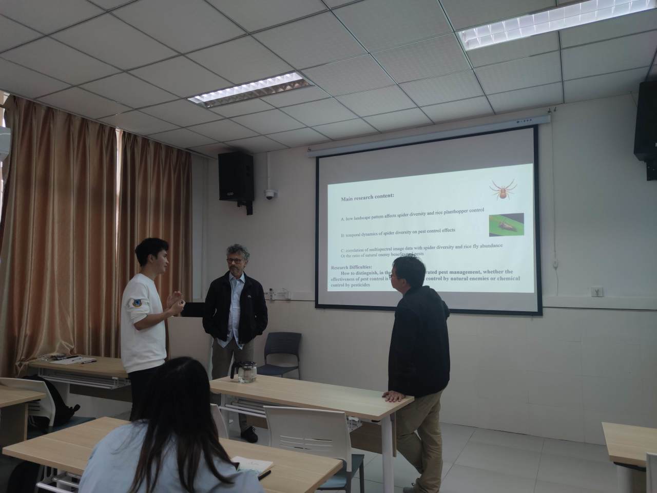 作了一场题为“瑞士农田生物多样性的研究”报告。他首先介绍了瑞士农业的发展状况和农业政策发展改革历史,并比较了中瑞农业的不同之处;其次教授介绍瑞士全域开展的农田生物多样性调查,最后介绍了他们开展的野花带工作,讲解了野花带的种植提升效果,根据他们所做的实验表明: 种植野花带可以增加了害虫天敌的数量,使谷物虫害发生率减少了61%,并发现野花带的种植效果和时间呈正相关关系。