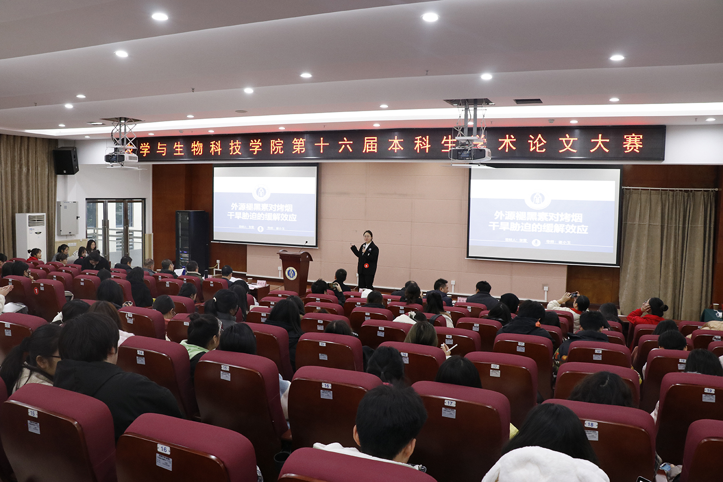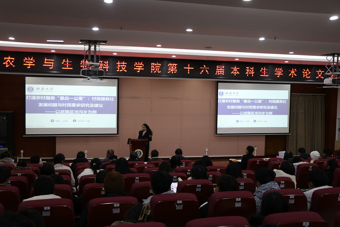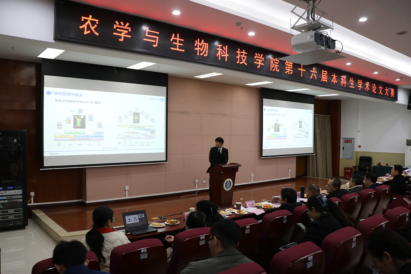 展演答辩环节由张建奎副院长主持,张院长向同学们介绍答辩规则与流程后,各选手依次进行陈述和答辩,根据所在团队的研究课题进行论文陈述,从研究背景与意义、技术路线、研究结果、创新点、展望与思考等方面进行汇报。展演作品包括《水稻矮化多蘖突变体的鉴定与图位克隆》《水稻基因调控花器官发育的分子机制研究》《马铃薯X/Y病毒检测试纸条的批量制备研究》《外源褪黑素对烤烟干旱胁迫的缓解效应》《甘蓝型油菜基因调控根毛发育的功能研究》《重庆地区义务教育优质均衡发展现状及改进思路》《村级服务社发展问题与村民需求》等多角度、多方向、多层次的研究课题,充分体现农生学子多维发散的思维和广阔的研究视野。在答辩环节中,现场的各位评委老师就论文作品的研究背景及意义、研究方法运用、实验数据相关性、调查的样本量、论文创新点和实用性、研究结论以及大规模生产成本等方面进行提问,并指出选手论文的不足和疏漏之处,对选手们图表的制作和PPT讲述提出改进建议,对项目未来的研究方向提出指导性意见。现场的思想碰撞、犀利问答,让在场所有同学都受益匪浅,收获颇多。
