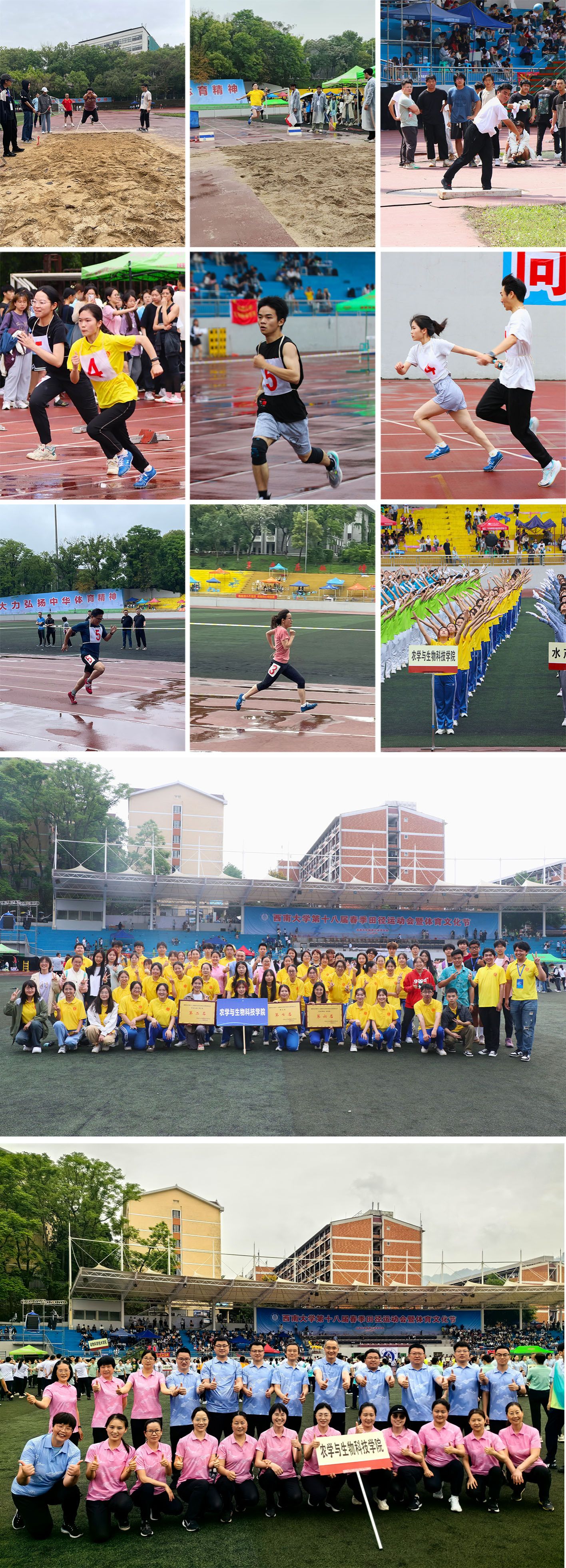 经过两天的激烈竞赛,校运会圆满落幕。运动员们青春的脚步、绽放的笑容、拼搏的汗水,成为运动会最完美的注脚。全院师生的奋勇拼搏取得了喜人的成绩,荣获西南大学第十八届春季运动会田径比赛学生甲组团体总分第六名、学生乙组团体总分第二名、教职工组团体总分第七名、广播体操比赛学生组三等奖。在学生甲组比赛中,甘宇玲同学获女子跳远第六名、女子100米第八名;曹丞玮同学获女子三级跳远第一名;单宜越同学获女子400米第二名、女子铅球第三名;郑涵予同学获女子800米第七名;吴松泽同学获男子800米第七名;范鑫宇、甘宇玲、潘逸、王柳静同学获男女4*100混合接力第五名。