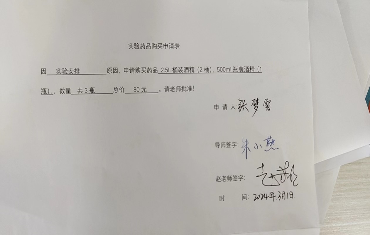 各团队都有专门的危化品管理老师,负责团队成员的危化品申购审核以及跟踪后续的购买、使用、回收、销毁等流程,确保危化品的全过程安全管理。