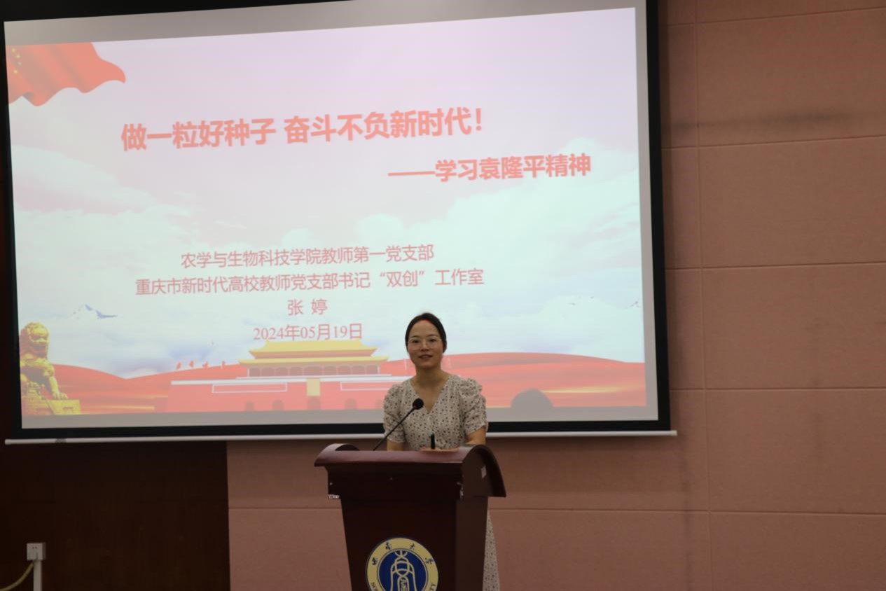 教师第一党支部书记张婷作了“做一粒好种子,奋斗不负新时代”主题报告。张婷详细阐述袁老的生平,着重讲述袁老在求学过程中的不易与坚持,鼓励同学们不负韶华,不负时代,不负人民,在青春的赛道上,奋力奔跑,争取跑出这一代青年人的最好成绩。