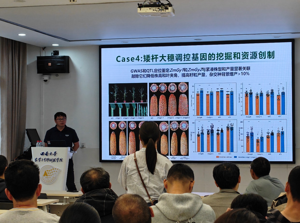 此外,刘磊教授还重点介绍了部分关键基因在穗发育及产量性状遗传改良中的应用改良,展示了其在提高玉米产量方面的重要价值。