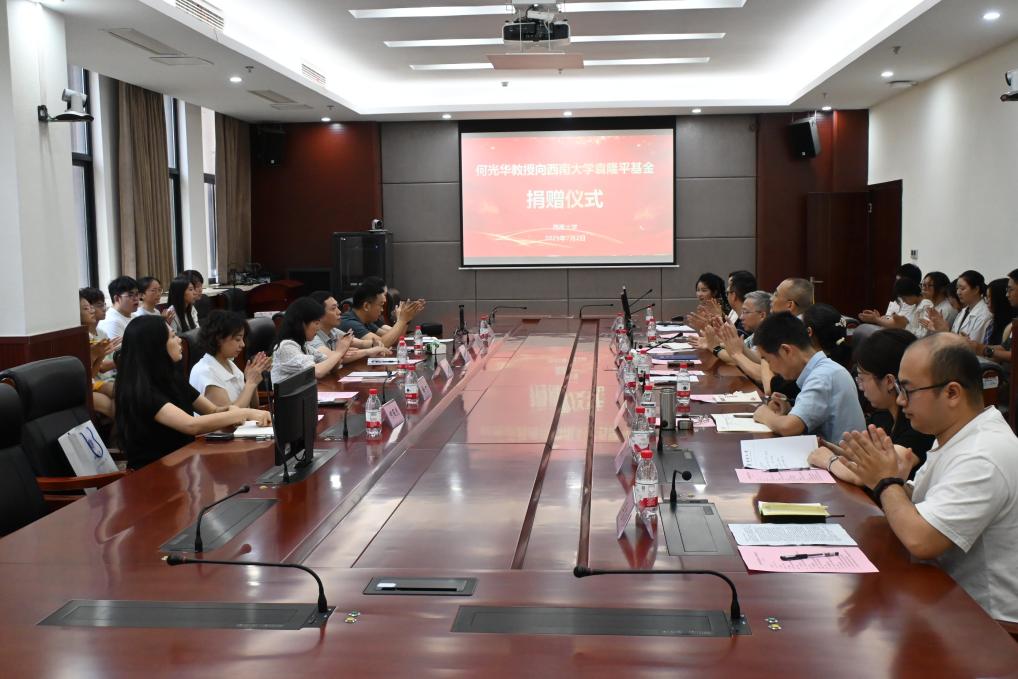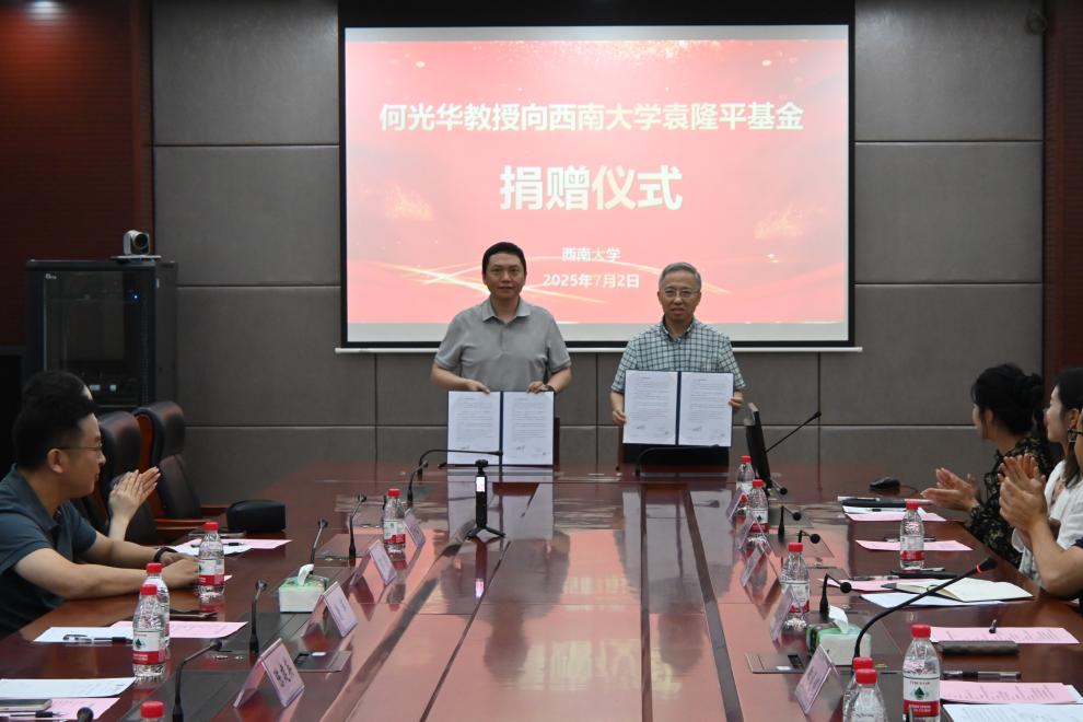 7月2日上午,何光华教授向西南大学袁隆平奖学金捐赠仪式在隆平楼108多功能厅举行。学校对外联络办公室唐军主任、陈建英副主任,何光华教授,世界赌场排名