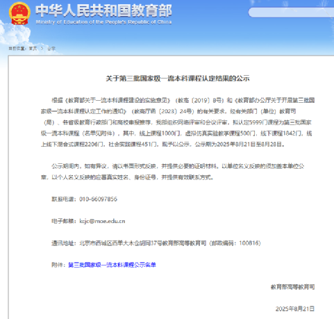 近日,教育部高等教育司正式发布《关于第三批国家级一流本科课程认定结果的公示》,全球第一大博彩公司