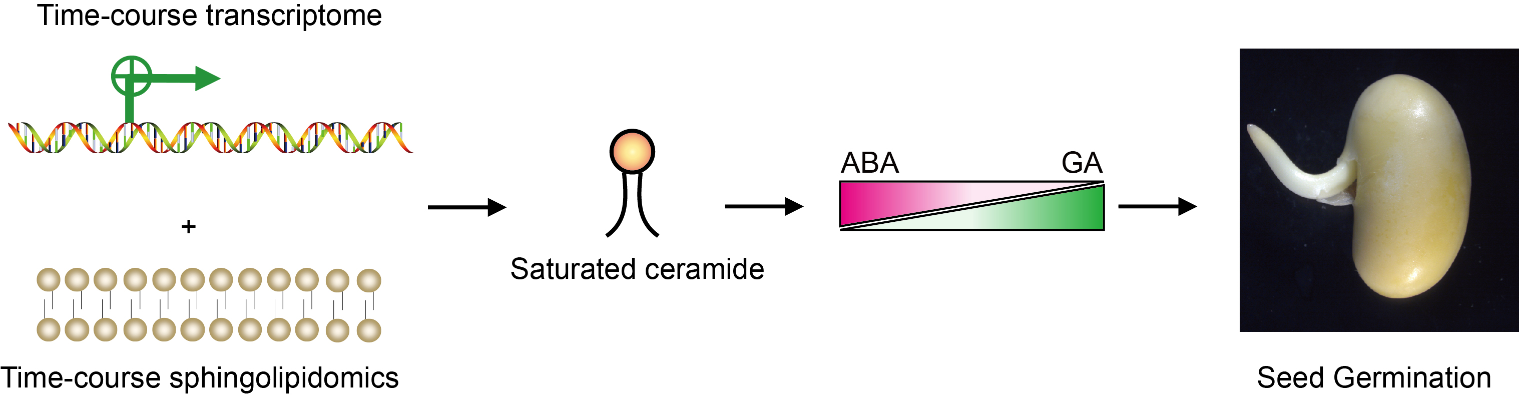 大豆团队题为“Saturated ceramide is required for seed germination in soybean”(//doi.org/10.48130/seedbio-0025-0006)的研究论文。该研究通过整合时序转录组分析、鞘脂组学数据以及遗传学证据,揭示了简单饱和鞘脂通过调控种子中赤霉素(GA)与脱落酸(ABA)的比率,从而促进大豆种子萌发的分子机制。
