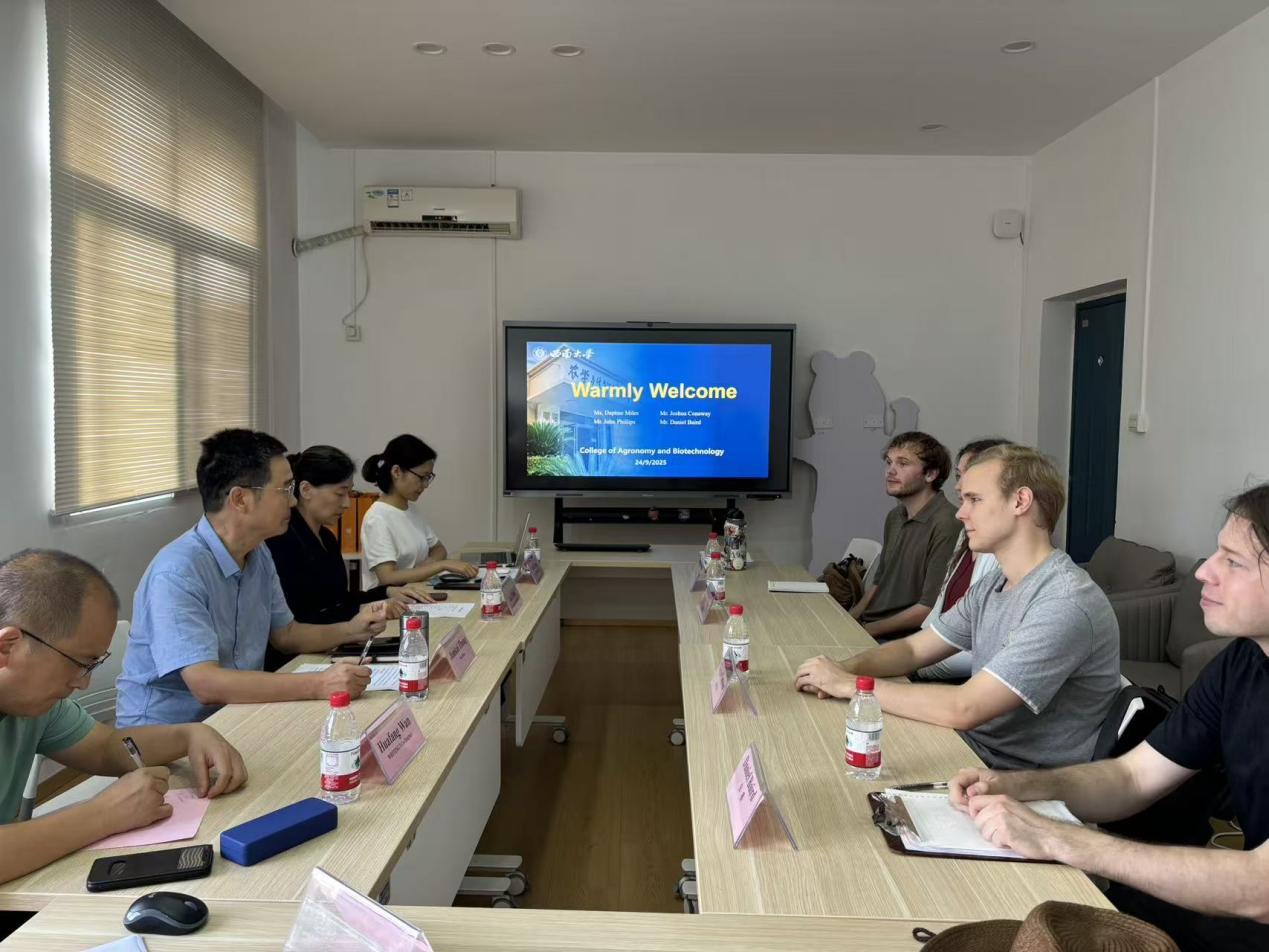 向远道而来的两位新外教Daphne Miles和John Phillips表达热烈欢,同时他指出,植物科学与技术中外合作办学项目已平稳运行 6 年,项目学生的英语水平显著高于其他普通专业,这一优异成果离不开此前在西南大学授课的外籍教师辛勤付出,希望外教们继续发挥英语母语者的专业优势,为学生带来地道的英语应用能力教学,西南大学与美国密苏里州立大学之间要拧成一股绳,推动学生培养质量再上一层楼。