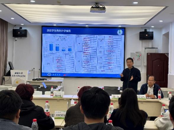 会上,张建奎副院长首先介绍了近三届植科学生毕业去向 ,通过具体数据与案例,清晰呈现了往届学生在升学方面的分布情况,不仅直观彰显植科专业中外办学模式下的培养成效,更给在场学生提供了可参考的发展样本,帮助学生更直观地了解专业前景。