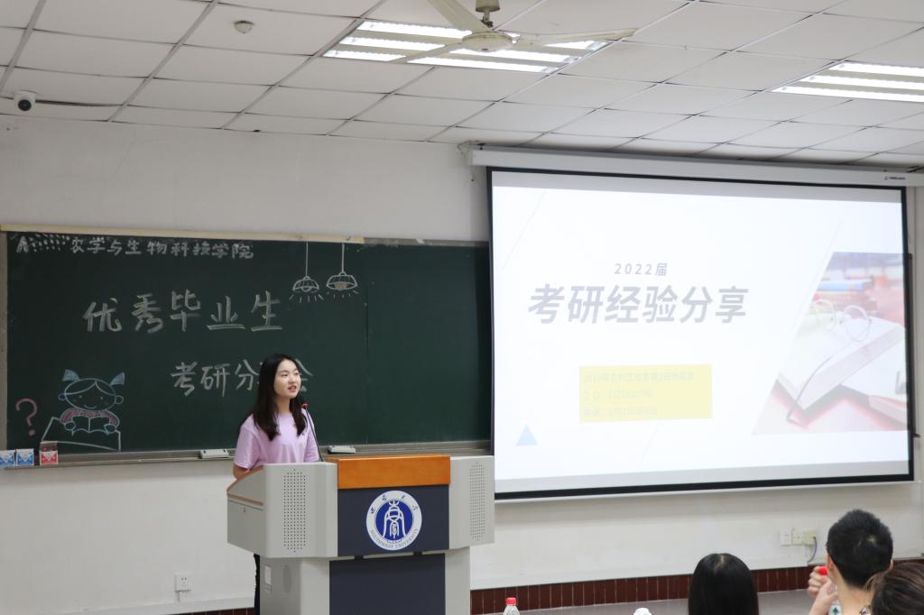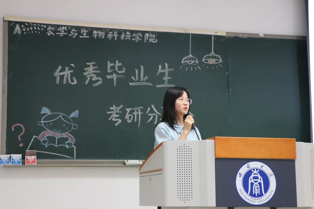 作物遗传育种专业。韦秘同学在本科期间积极参加学生工作,也曾担任院学生会新闻编辑部副部长的职位,学生工作与学业成绩两不相误。她向同学们回溯了自己的考研的心路历程,“考研的这几个月里,我成熟了许多,孤独、寂寞、忍耐、承受、等待……”她对考研的总结也提醒同学们要未雨绸缪,“凡事预则立,不预则废”。