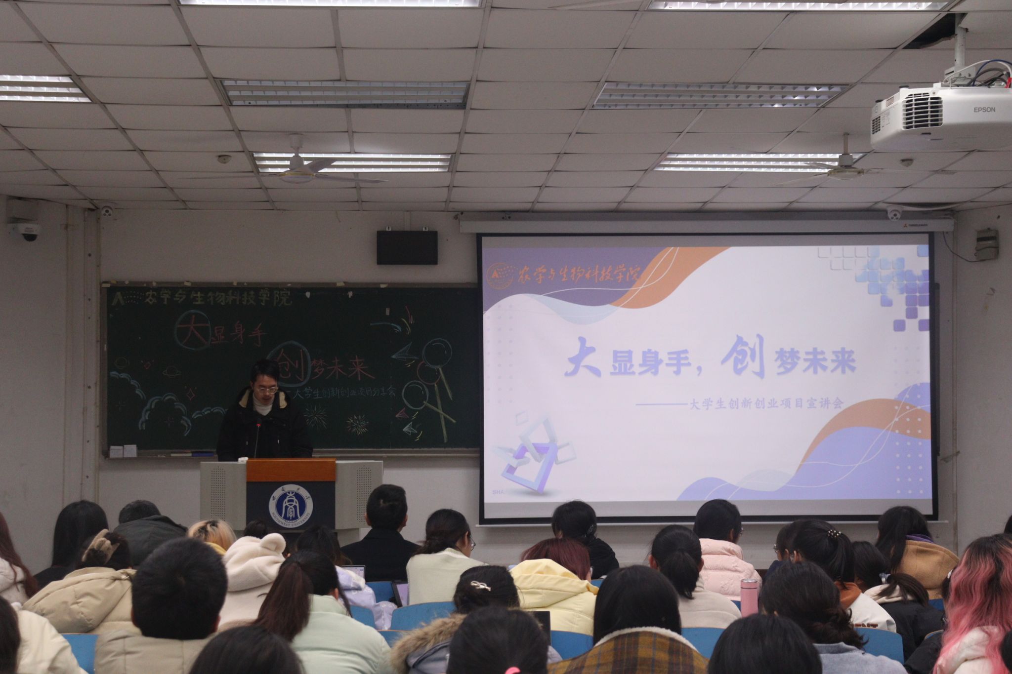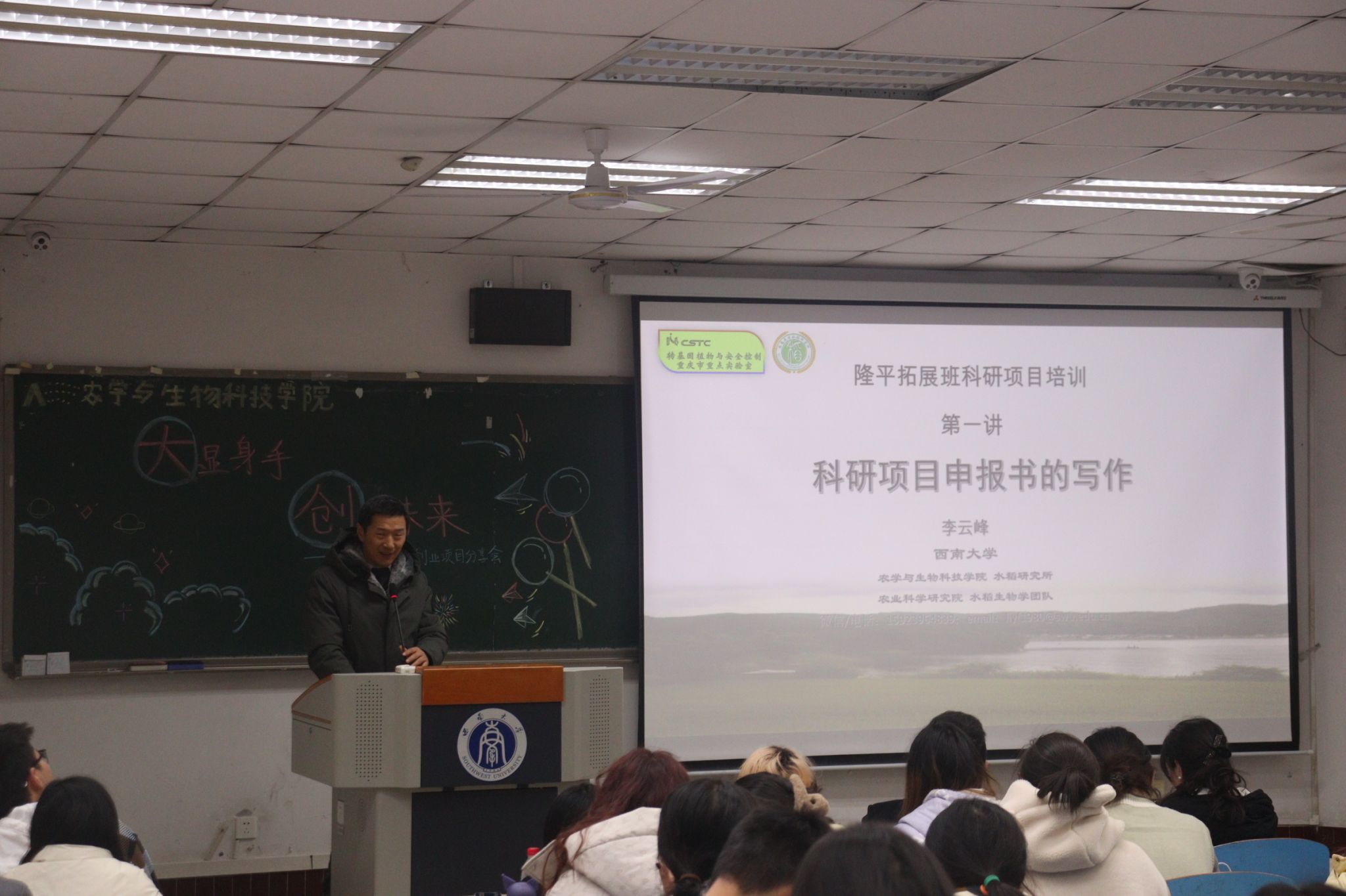 副院长张建奎老师、2021级隆平实验班班主任李云峰老师、2022级辅导员白祯老师、优秀大创项目负责人代表张雪同学出席分享会,2022级、2023级同学共同参与。