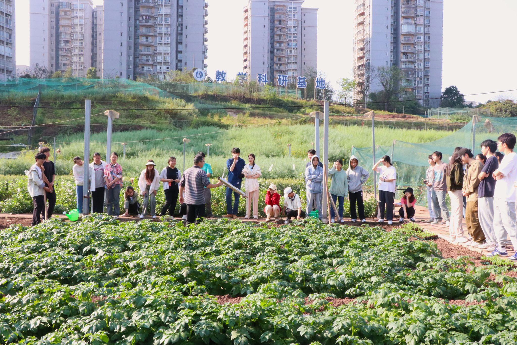 本次移栽活动分为上午和下午两个时段进行,34名体验者分别跟随农学专业的同学们和《作物生产实训》课程授课教师赵勇来到西南大学教学实验基地开展劳动实践。在移栽前,赵老师给同学们认真讲解了玉米的生物学特性、移栽技巧等知识要点,并作了现场示范,同学们就不懂之处与赵老师进行交流。