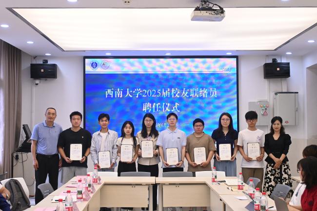 座谈会后还进行了2025届校友联络员聘任仪式,阳义健书记、刘秋艳副书记为校友联络员颁发聘书。