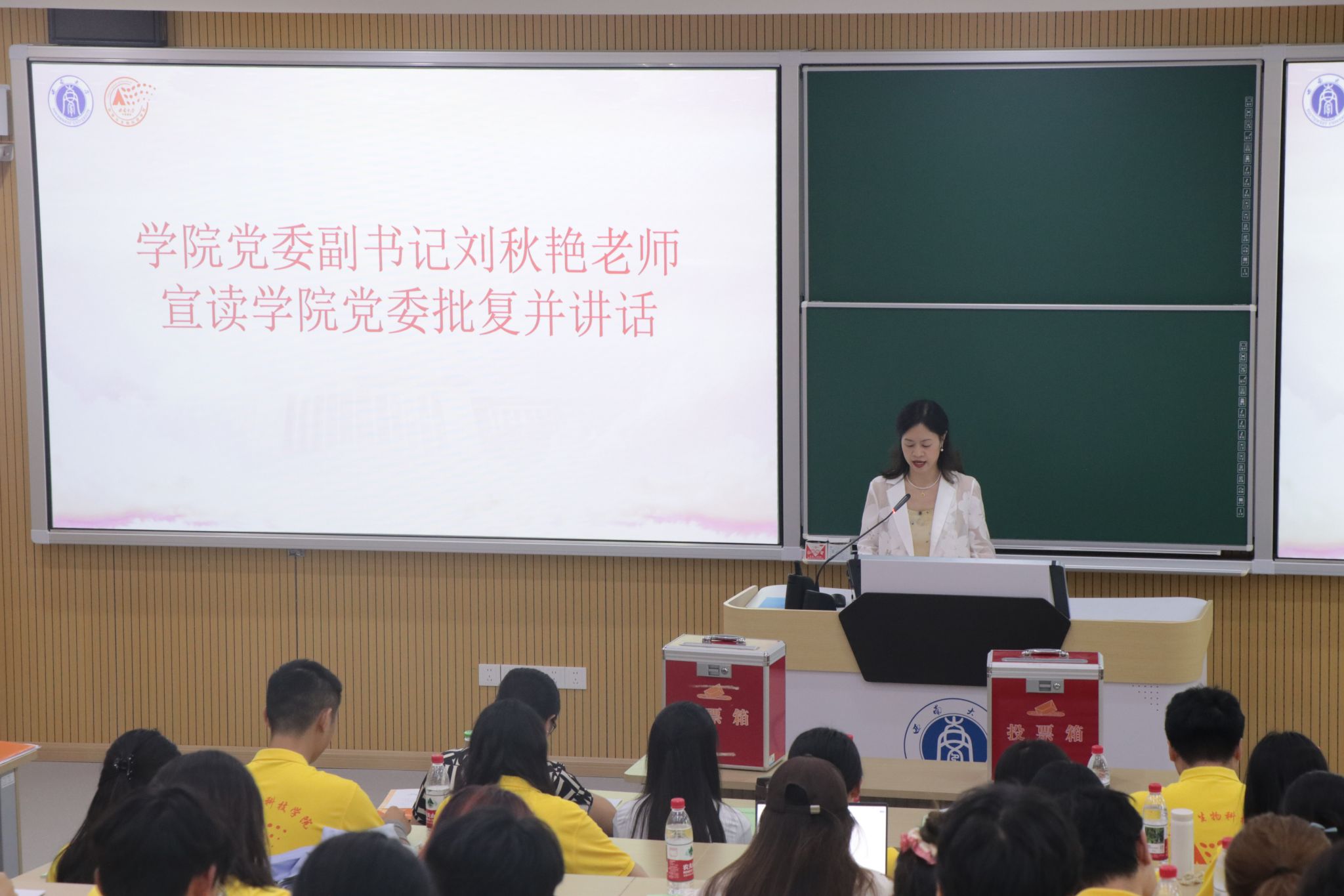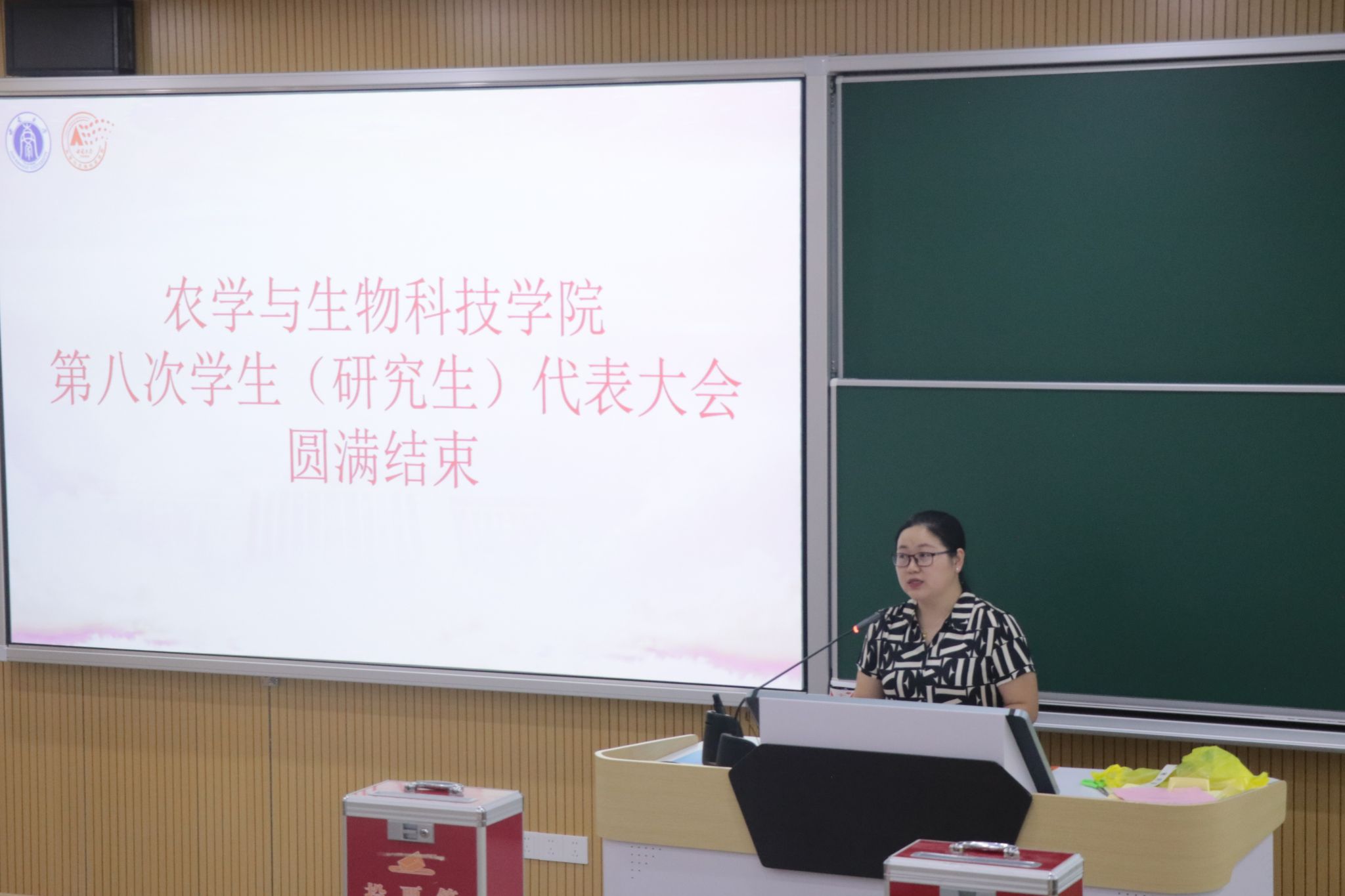 党委宣读批复并发表讲话。她高度评价了第二十届学生会、第十九届研究生会在思想引领、服务同学、组织改革、校园文化建设等方面取得的显著成效。面向新征程,刘秋艳副书记对全体代表和全院青年学子提出四个目标:一是要筑牢信仰根基,勇担强国复兴使命,深刻领悟新时代青年的责任与担当;二是要激扬奋斗之志,传承五四精神,将个人理想融入强国建设、民族复兴伟业,在服务农业新质生产力发展、推动乡村全面振兴中展现青春风采;三是要扎根实践沃土,练就兴农报国过硬本领,在专业学习和躬身实践中追求卓越,传承“学农爱农、强农兴农”的情怀;四是要提升服务效能,发挥好桥梁纽带作用,建设清新阳光的学生组织。