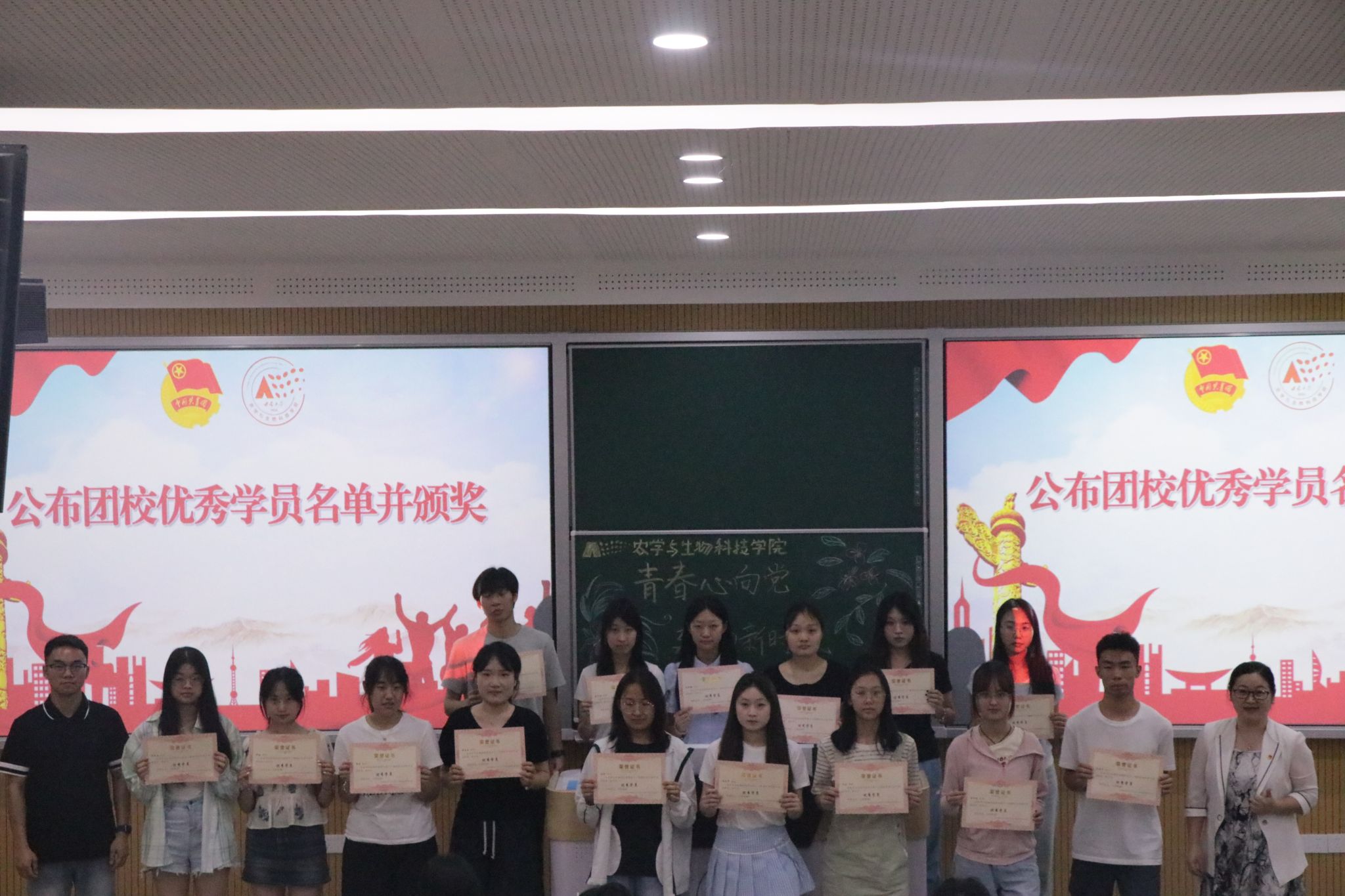 随后,团校结业典礼庄重举行。自2024年11月开班以来,本期团校开展了习近平新时代中国特色社会主义思想专题理论学习、新时代雷锋精神理论讲座和学生骨干素养能力分享会等内容丰富、形式多样的课程。学员们认真学习、收获颇多。其中蓝绮韵等16名同学被评为“优秀学员”。来自2024级植物科学与技术专业1班的温世平同学作为“优秀学员”代表发言,她表示在几个月的团校学习中不仅提升了理论修养、增强了技能本领,更实现了自我成长。温世平同学呼吁同学们要自觉将个人成长与社会需求、民族命运紧密相连,立志在农业科技创新、农业技术进步、乡村振兴广阔天地争当排头兵和生力军,肩负起“新农人”的时代使命。