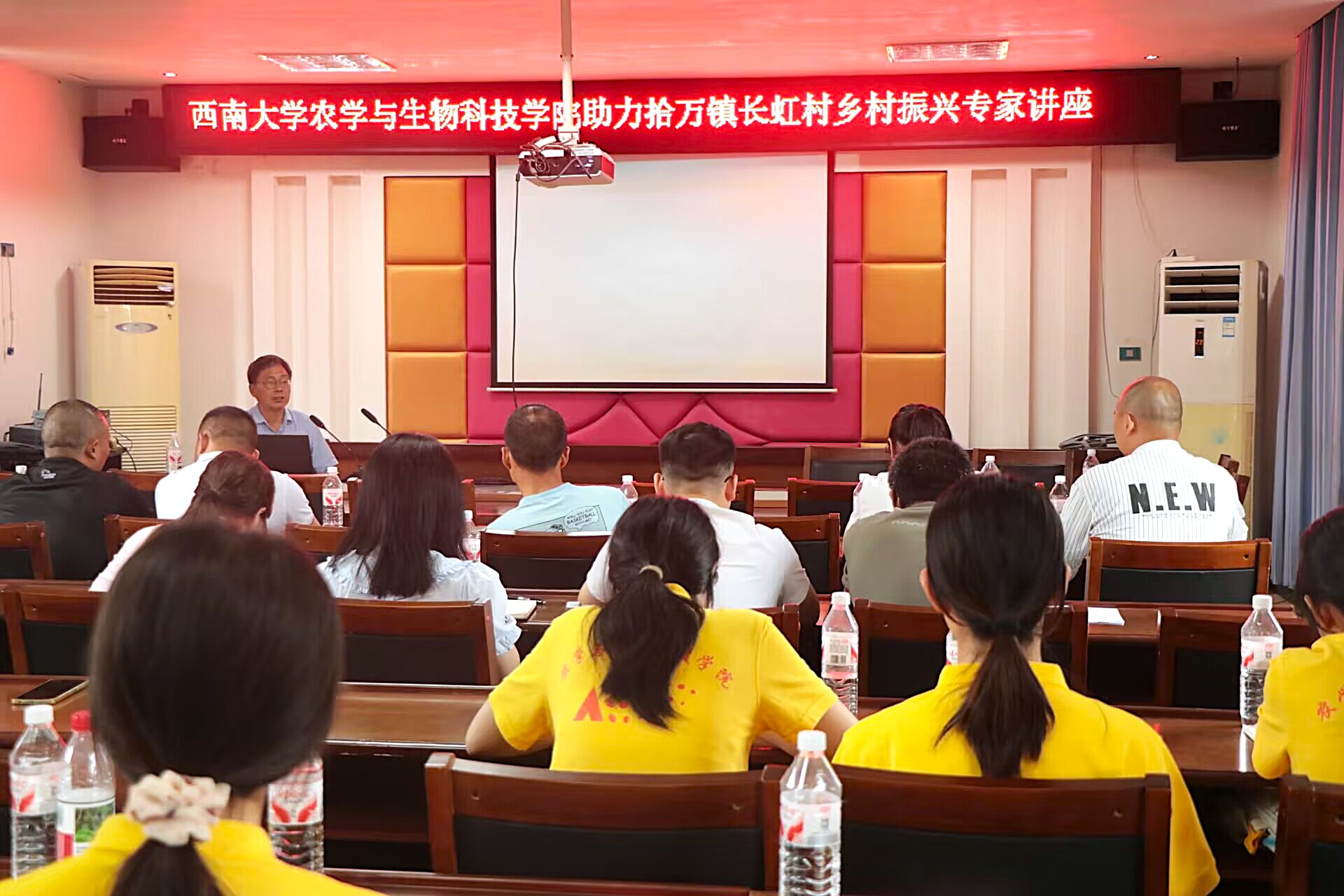 助力拾万镇乡村振兴座谈会在长虹村党群服务中心会议室召开,实践团师生与拾万镇副镇长及十余名种植大户代表齐聚一堂,深入剖析产业难题,共商产业发展良策,为乡村振兴注入“稻”路新动能。座谈会上,王地生副镇长以长虹村与袁隆平先生的深厚渊源为切入点,为大家介绍了长虹村水稻产业的发展历程,同时他也指出了长虹村目前面临的“稻+虾”模式瓶颈、五彩稻田部分品种显色不理想、稻米品质有待提升等挑战。张长伟教授发挥专业优势,围绕五彩水稻显色、大面积单产提升等问题展开技术指导,提供了改进排水技术、优化水稻品种等思路,并推荐引进世界赌场排名