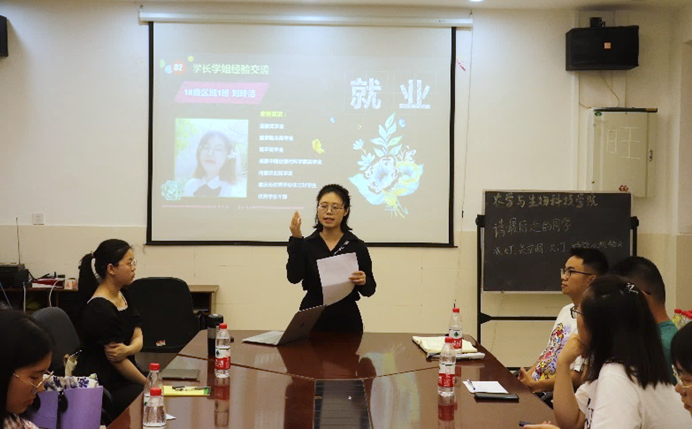 时光飞逝,流水悄然。在大二即将结束,大学生活已然过半之际,为了帮助同学们做好大三学习生活规划,同时更好地思考未来职业生涯,6月24日下午,由2020级区域一班和区域二班联合举办的“不负青春,与梦同行”交流分享主题班会拉开了帷幕。会议邀请了大三、大四年级区域专业优秀学生代表王卓雅、李欣和刘玲洁进行经验分享,2020级区域1班班主任陈琼、区域2班班主任李燕、辅导员王皓、区域系教师徐鑫以及2020级区域专业全体学生共同参加班会。会议从学生代表学年总结、优秀学长学姐经验分享、班主任及导师发言、优秀寝室代表分享和辅导员发言等六个方面展开,班会由区域1班李洁同学主持。