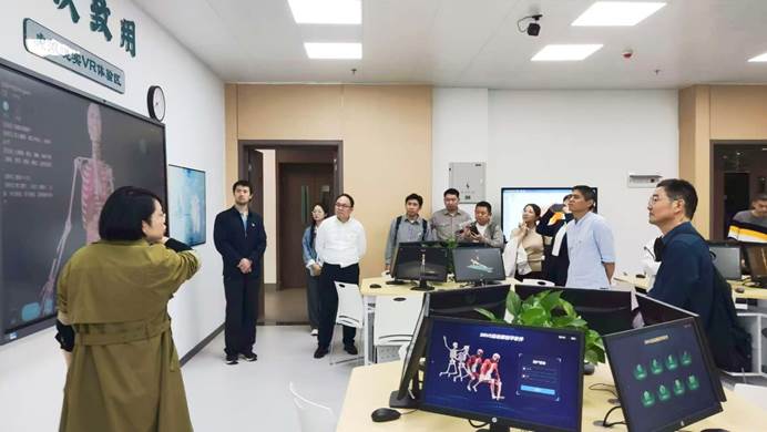 的现代化办学条件和科研设施。主要参观内容包括虚拟仿真实验室、显微镜形态实验室、人体机能学实验室、人体大体形态学实验室等,这些先进教学设施和设备给大家留下了深刻印象。通过交流学习,大家对现代化、数字化、智慧化教学有了更直观的了解,也对如何将党建工作与教育科研工作相结合有了更深入的思考。
