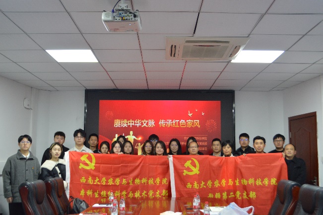 教师第二党支部于西南大学科技楼511会议室共同开展了以“赓续中华文脉,传承红色家风”为主题的党日活动。此次活动特别邀请了校工会副主席、教代会副主任李玉兰参加。