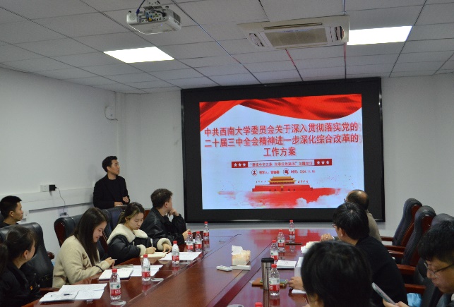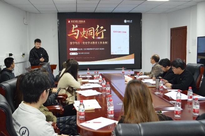 党的建设专业硕士研究生林正雄带领全体党员学习了《党史学习教育工作条例》,林正雄从何为党史学习教育工作条例,为何学习此条例,如何学习此条例三方面进行了重点阐述。教师党员曾健晏学习传达《中共西南大学委员会关于深入贯彻落实党的二十届三中全会精神进一步深化综合改革的工作方案》精神,将学习内容与学校政策有机结合,重点学习深化教师评价及其机制改革、收入分配和绩效考核机制改革、教育数字化转型发展机制改革,学科专业发展机制改革、机构设置和职能优化的改革五方面内容。