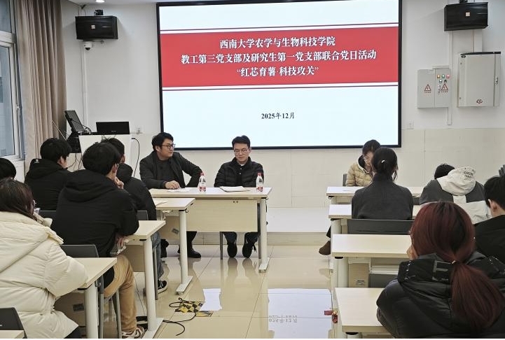 活动伊始,全体党员集中学习了2025年12月组织生活核心学习内容。在领学环节,重点传达了习近平总书记在中共中央政治局第二十三次集体学习时关于加强网络生态治理和在纪念胡耀邦同志诞辰110周年座谈会上的重要讲话等内容,通过集中学习,全体党员进一步统一了思想认识,明确了将理论学习成果转化为科研攻关、服务“三农”实效的实践方向。
