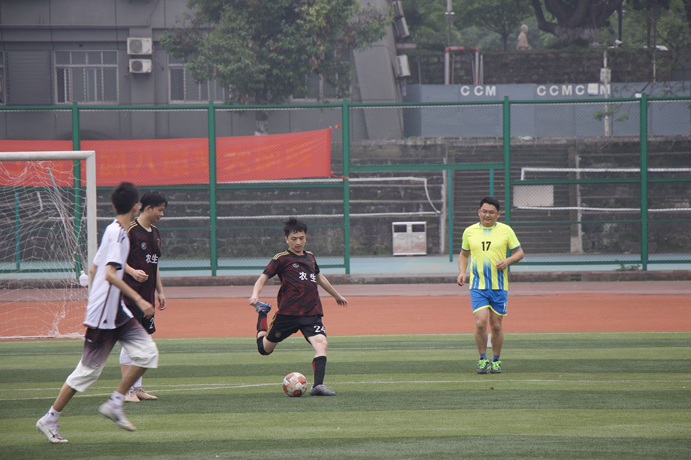 学生男子足球队。球场上,平日在教学科研岗位兢兢业业、辛勤耕耘的老师们与青春洋溢、激情满满的学生们一起切磋足球技艺,挥洒汗水,共享运动的快乐。