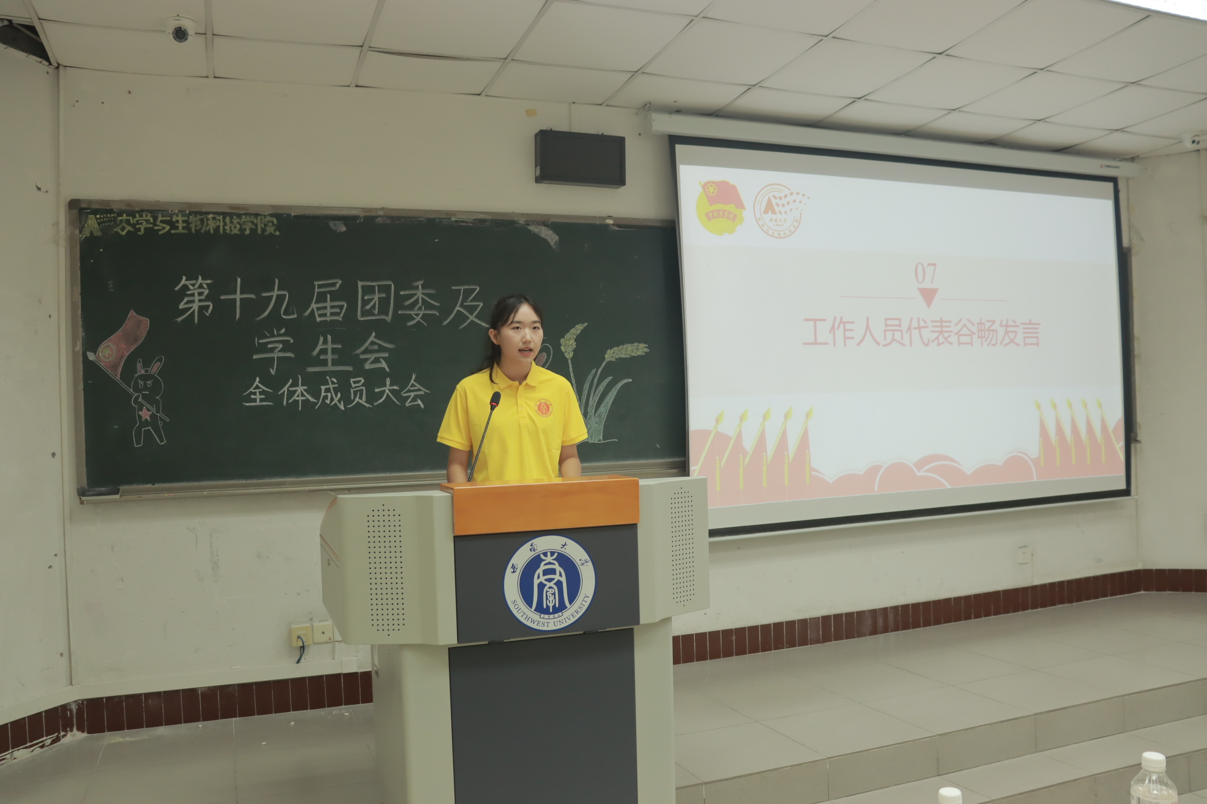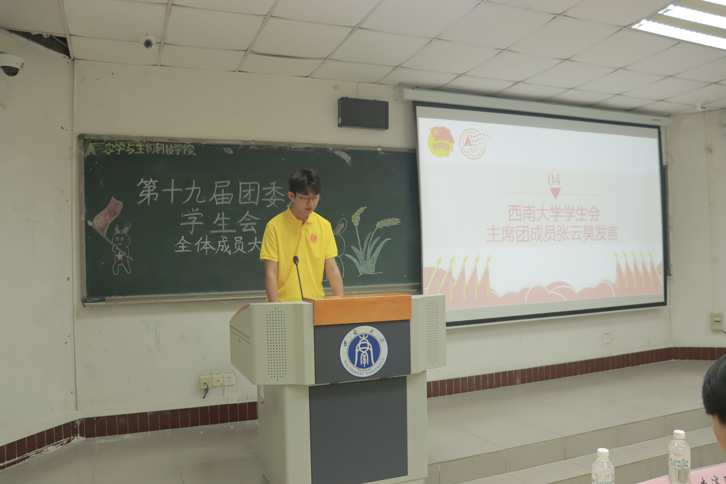 优秀学生骨干代表、西南大学学生会主席团成员张云昊同学出席大会,第十九届团委及学生会全体成员共同参加,大会由办公室工作人员李佳宜同学主持。