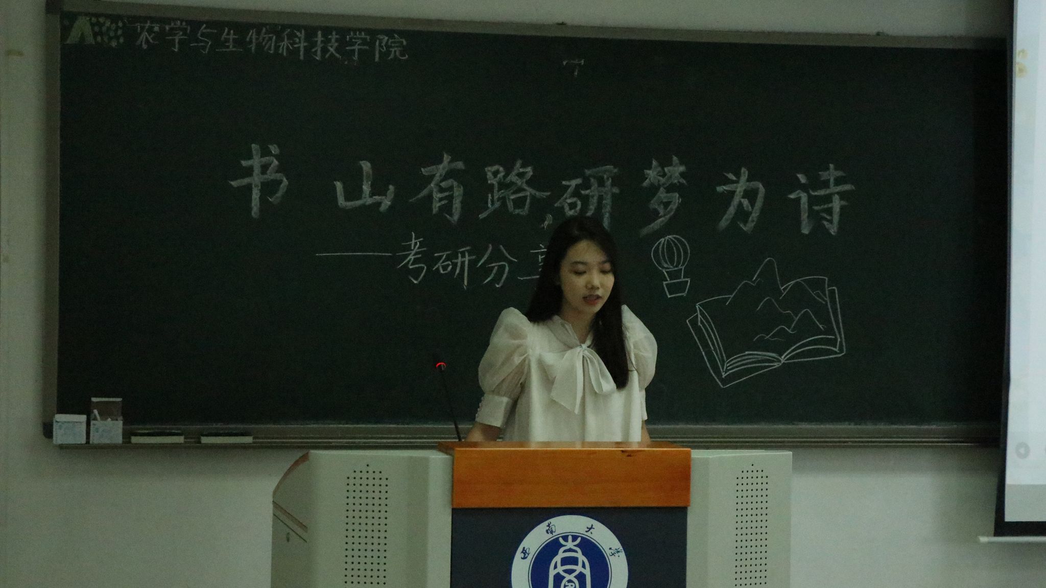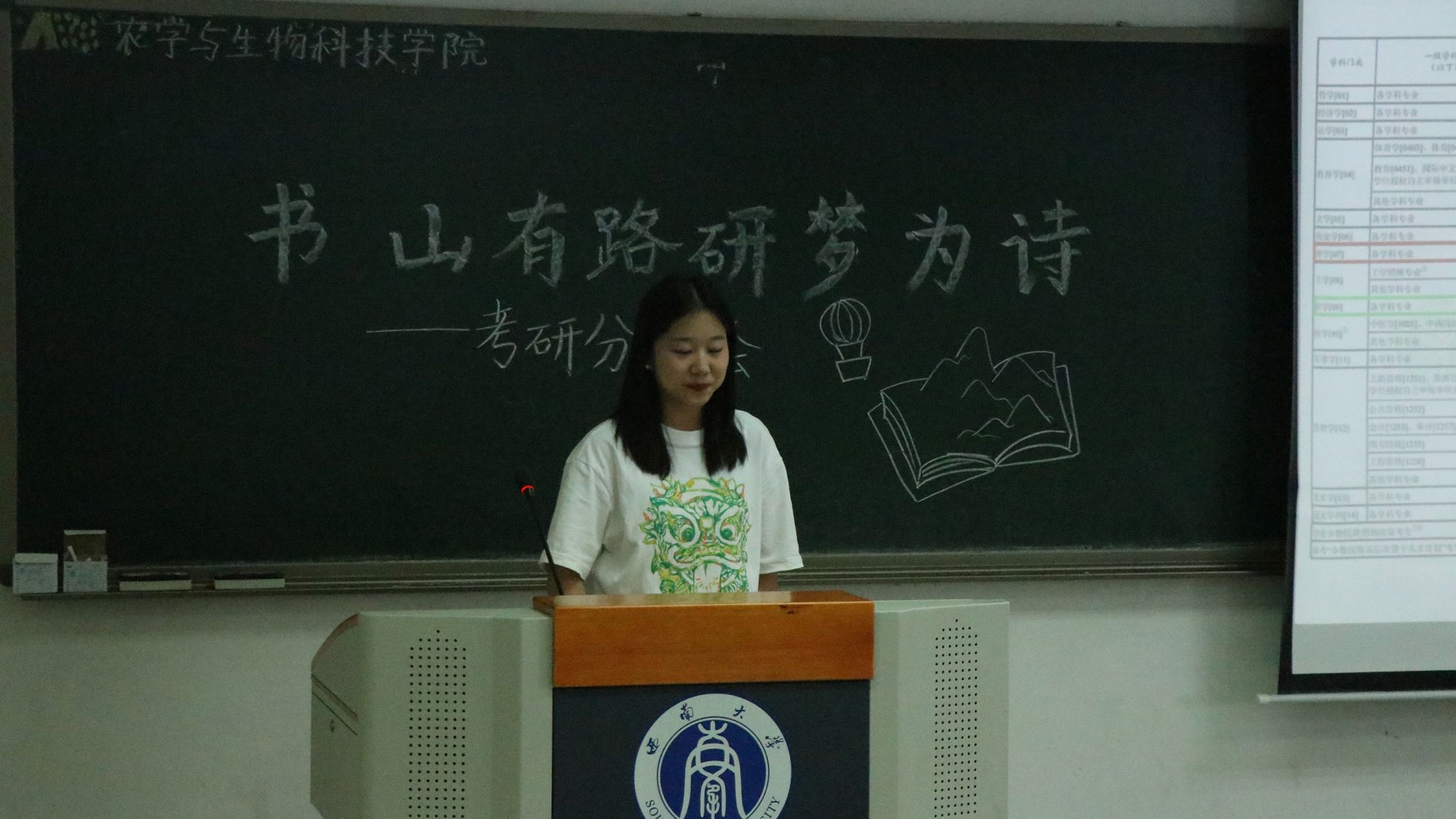 农业管理专业的谭诗雨同学主要从选择学校和专业时应注意的问题以及获取信息的途径两方面进行分享。关于择校,她建议同学们浏览意向院校的官网,仔细分析目标专业的招生人数、复试形式等关键信息。她还提出可以通过“农业硕士考研帮”公众号获取农业方面的院校信息,通过“考研斯基师兄”公众号获取政治、英语等学科的历年资料。最后,她谈到备考心态也很重要,备前勿浮躁、备中不烦躁、中后要坚定、考前要放心。