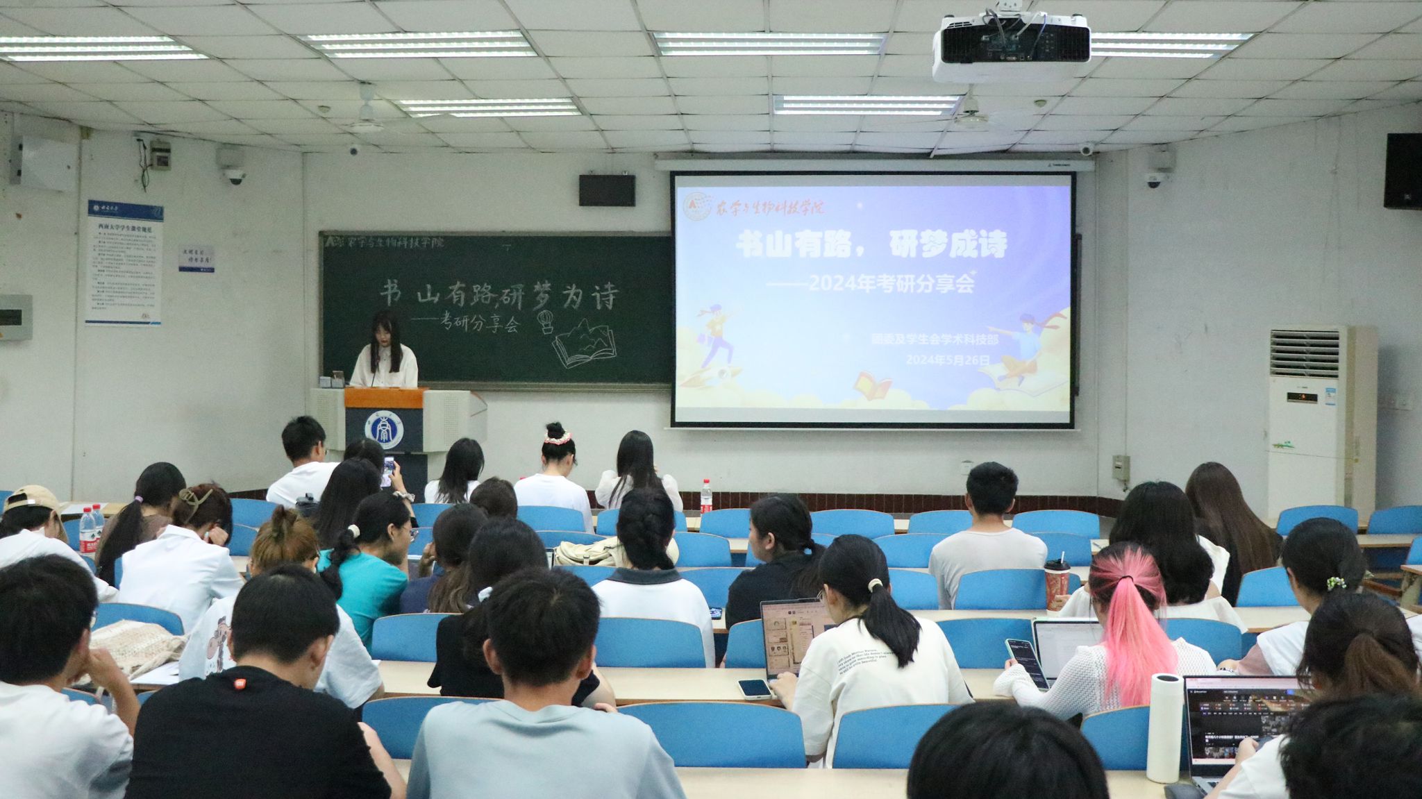 在32教312教室举办“书山有路,研梦为诗”考研经验分享会。会议邀请到2020级张宇丹、贾欣瑶、谭诗雨、孙悠4名优秀学长学姐为低年级同学分享备战考研过程中的宝贵经验,并解答同学们的疑惑。
