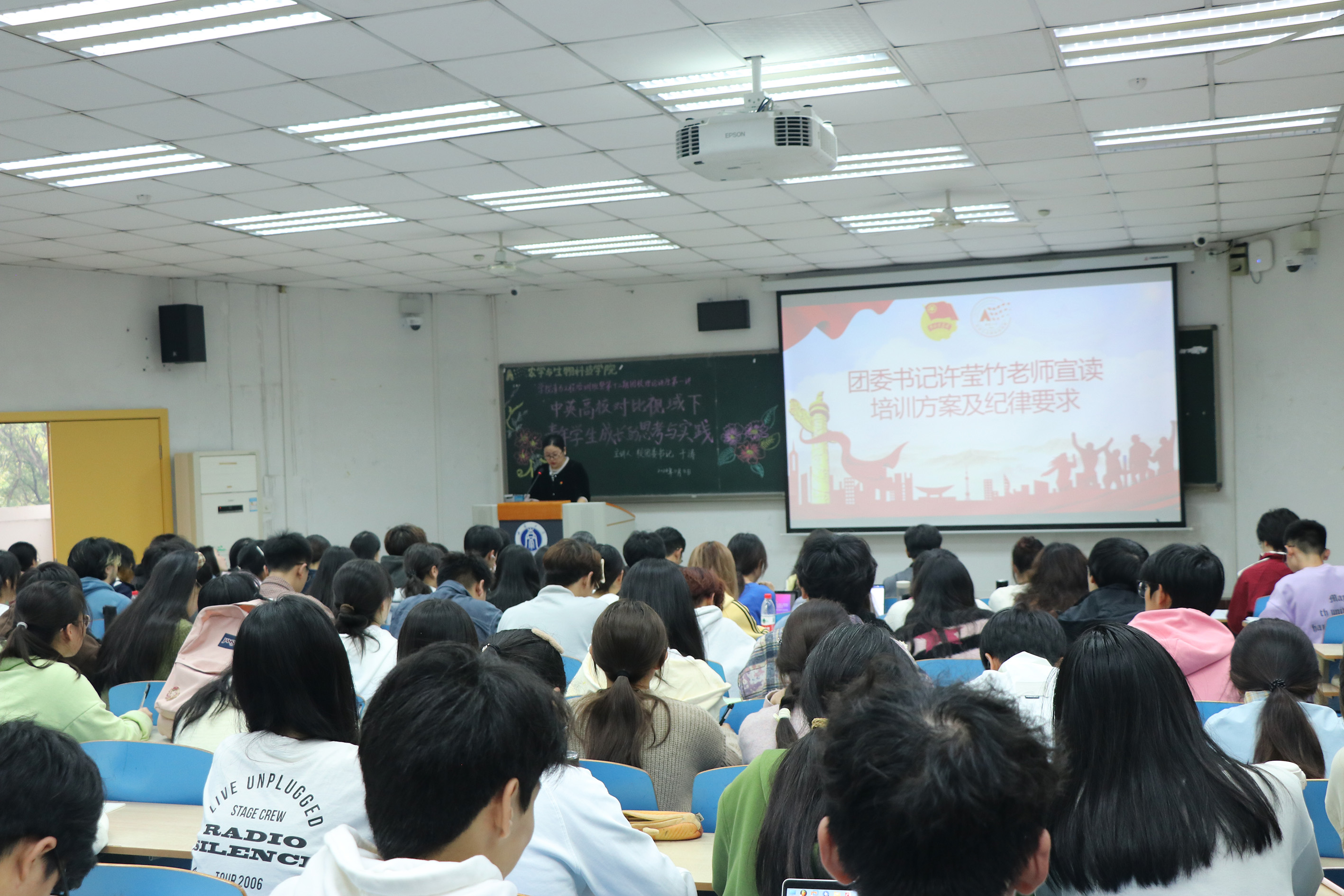 团委书记许莹竹老师宣读《“青马工程”培训班暨第十二期团校培训方案及纪律要求》,详细介绍本期培训班的主题课程设置、培训模式及时间安排等,希望学员们参加理论学习、能力提升、社会实践三个模块的学习,线上与线下双线并行,从理论到实践加深对习近平新时代中国特色社会主义思想学习理解,实现综合素质和工作能力的提升。