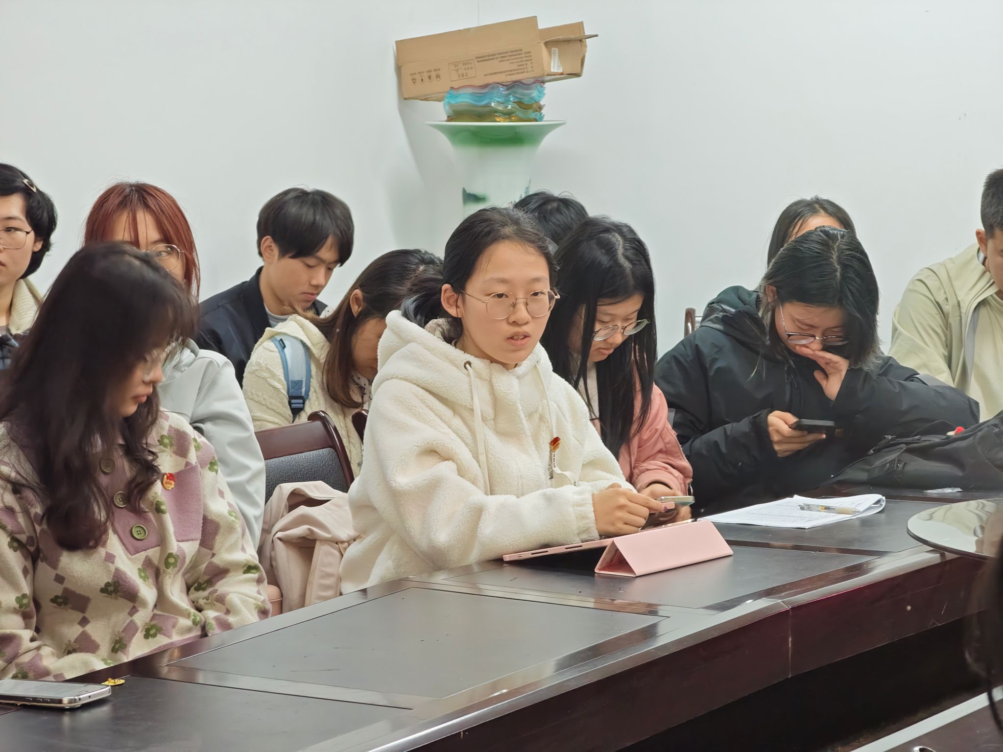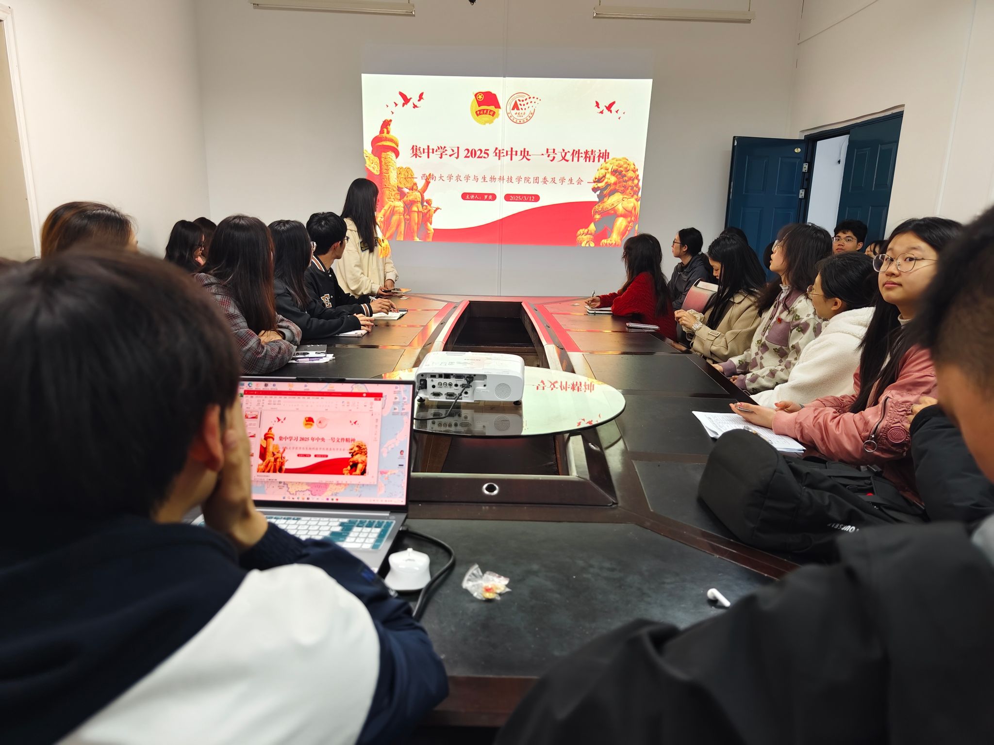 团委办公室工作人员罗奕领学,随后各部门负责人结合工作实际,围绕文件精神内涵、青年责任担当等方面展开多层次、多维度的学习感悟交流,展现出当代大学生将理论学习转化为实践动能的思想自觉与行动自觉。