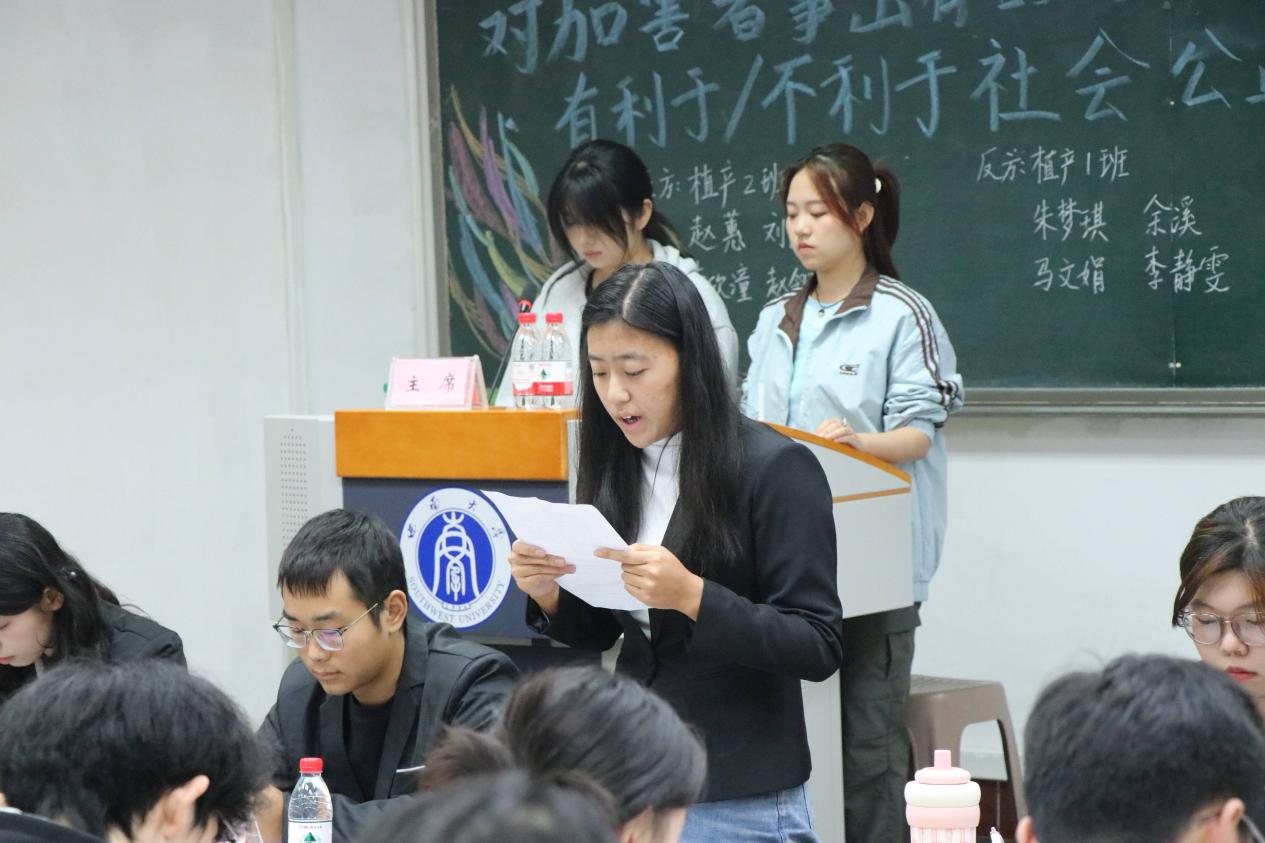经过初赛与半决赛的激烈角逐,植物生产类1班与植物生产类2班成功晋级决赛。双方围绕“对加害者事出有因的讨论,有利于/不利于社会公正”这一辩题,展开了一场思想与逻辑的精彩交锋。
