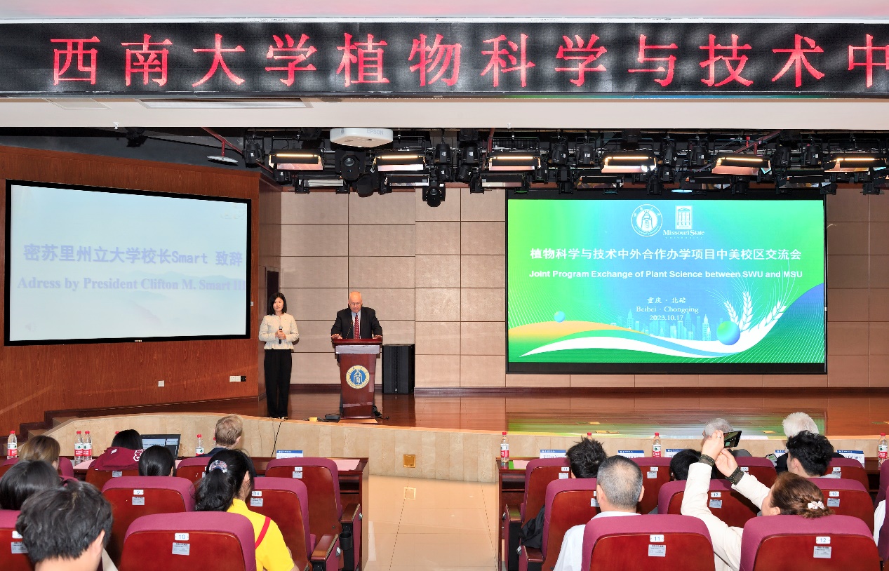 斯玛特校长在致辞中指出,密苏里州立大学与西南大学具有相似的发展历程和办学理念,植科合作办学项目整合了两校优质教学资源,为植科人才的国际化成长奠定了良好基础。在双方的联合培养下,转校区学生的成长效果显著,已毕业的转校区学生中,60%以上进入了国际名校深造。斯玛特校长强调,除中国外,MSU与世界上近百所高校也都有密切合作交流,学校的这部分国际资源也会同步对植科学生开放,确保转校区学生的国际化成长和培养成效。