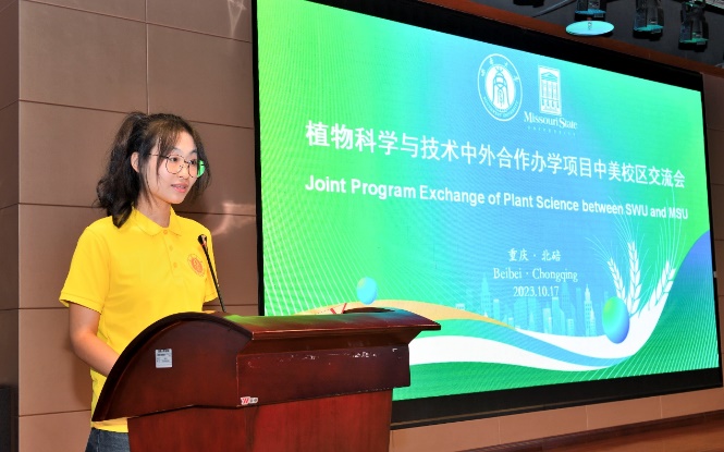 在学生代表发言环节,2021级杨潇然同学分享了她近3年的学习经历和感受,以及自己的成长和收获,对植科项目相关的领导、老师,以及项目提供的各种资源,表达了诚挚谢意。2023级新生代表张依扬在发言中谈到在人生最美的年华里不仅要学会仰望星空,更要脚踏实地的刻苦学习,将要充分利用项目提供给的各种资源,认真学习专业知识,积极投身社会实践,逐步提高语言能力,不断培养国际视野,成为最优秀的自己。