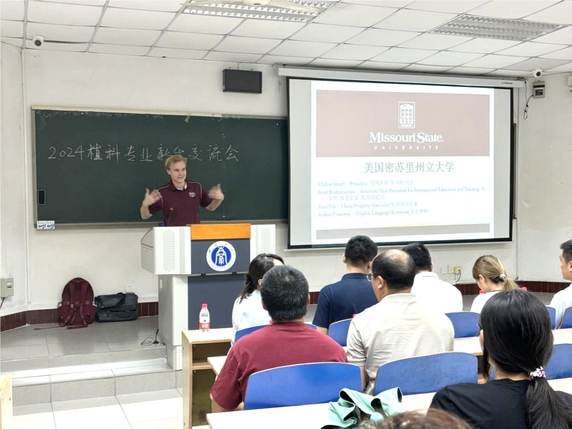 副院长张建奎;植科系的张凯、梅家琴、宋佳明、金丹、曾健晏等10多位教师;中外合作办学办公室刘志斋、张溢颖、吴雨桐老师;MSU教师代表Joshua;全体新生班主任荐红举、王凡龙、向洁和庄慧老师;以及2024级全体植科专业新生。主持人由张媞老师担任。