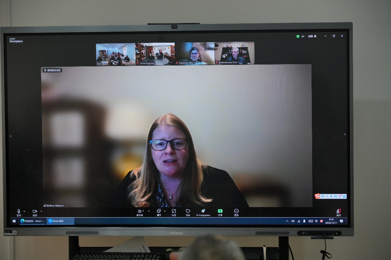 院长Dr. Melissa向与会者致以问候,并表达了对西南大学合作项目的满意和感谢。他们对西南大学学生的学习热情、英语能力和未来规划给予了高度评价,并表示将持续关注项目进展。双方共同讨论了未来五年的合作规划,并对未来充满信心。